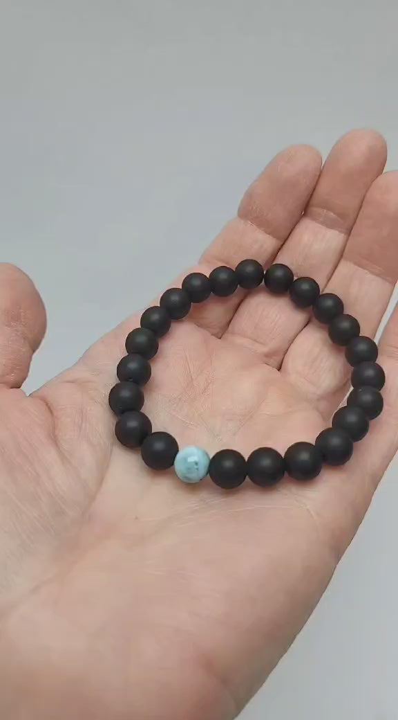 Armbånd Larimar & Onyx – Halschakra